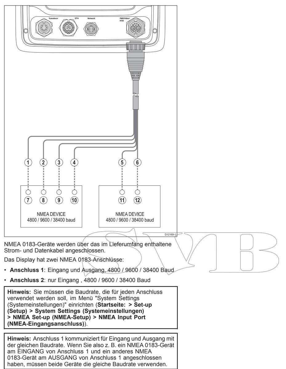 Wenn Sie einen GPS-Empfänger von Ravmarine haben, der NMFA0183 verwendet oder einen GPS-Empfänger eines Fremdherstellers, müssen Sie das Gerät getrennt anpassen