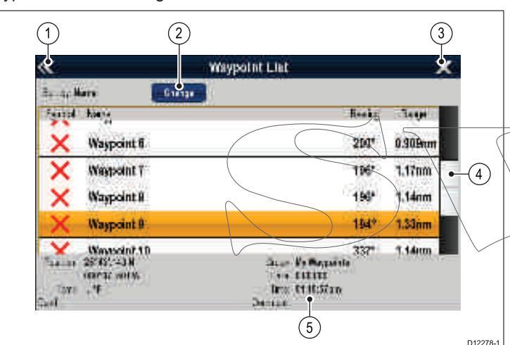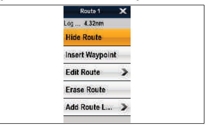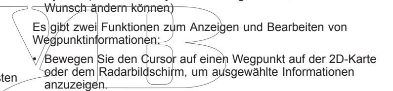 Hinweis: Eine aktive Route kann ebenfalls bearbeitet werden, mit Ausnahme des aktiven Wegpunkts. Wenn ein Wegpunkt aktiv wird, während Sie ihn bearbeiten, bricht das System die Änderungen ab und der Wegpunkt verbleibt auf seiner ursprünglichen Position.