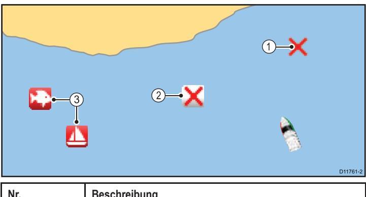 Ihre aktuelle Position wird auf dem Bildschirm durch ein Bootssymbol angezeigt.