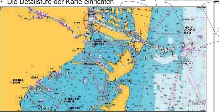 Navionics®-Kartenmodule bieten detaillierte Kartendaten zu dem Gebiet, das Sie befahren möchten. Die aktuelle Verfügbarkeit von Navionics-Kartenmodulen können Sie unterwww.navionics.com oder www.navionics.it.prüfen Die Menge der angezeigten Kartendetails hängt vom jeweiligen Fahrtgebiet und vom eingestellten Maßstab ab. Der aktuell verwendete Maßstab wird in der Statusleiste durch eine Zahl und eine waagerechte Linie