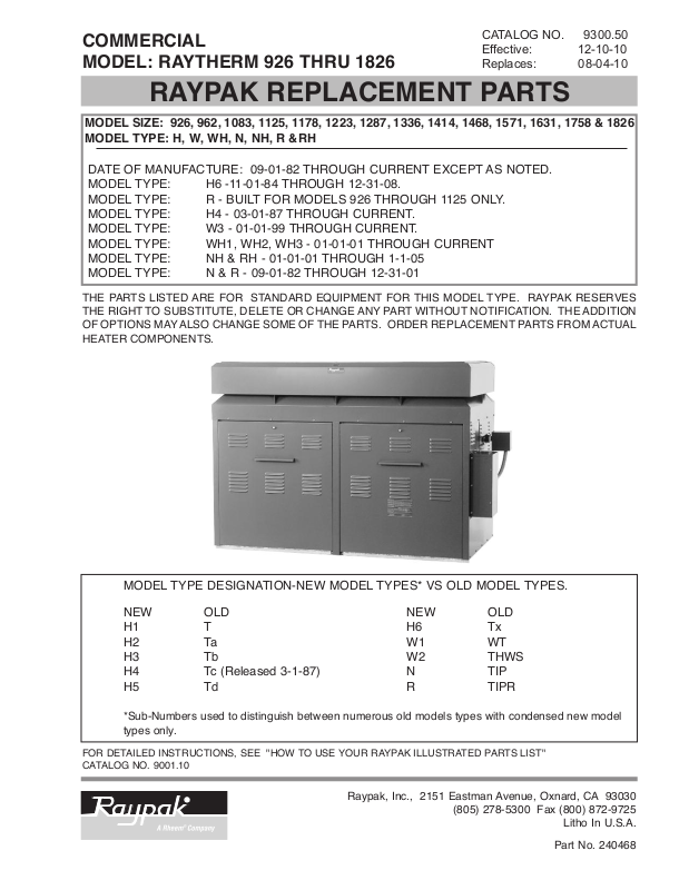 J Box Nat IID/ TTD Robertshaw (H1, H5, W2, WH) 004812F 004812F 004812F 004812F 004811F 004811F 004811F