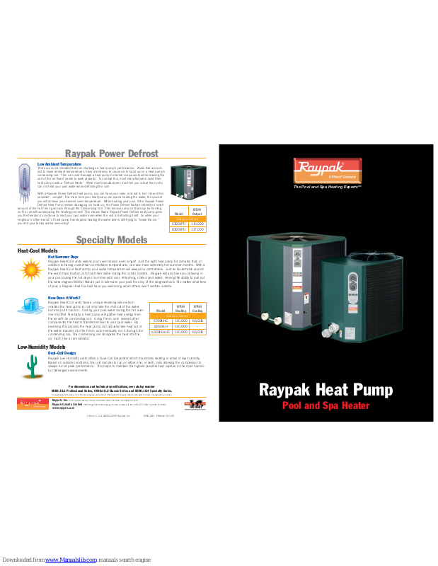 Your Raypak heat pump is designed to provide years of safe, reliable service, and