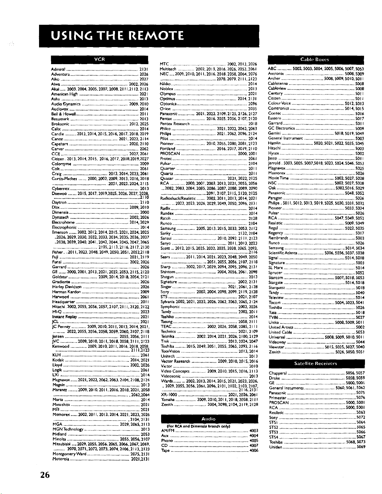 VCR remote codes 26