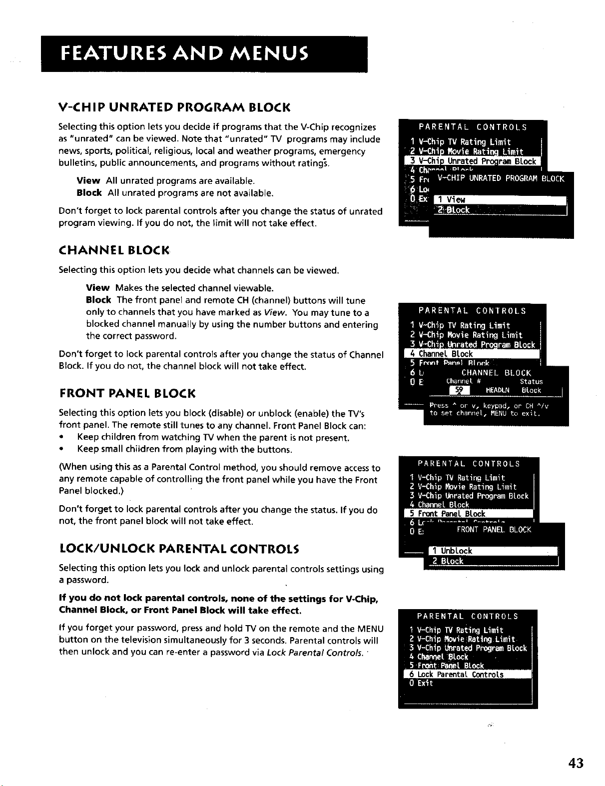 TV and stereo VCR .5 Parental Controls menu 37