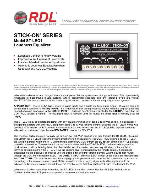 designed to operate with other RDL equipment using 0 to 10 Vdc for level control. Because the ST-LEQ1 works with