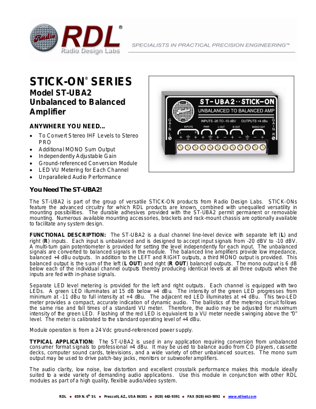FUNCTIONAL DESCRIPTION: The ST-UBA2 is a dual channel line-level device with separate left (L) and
