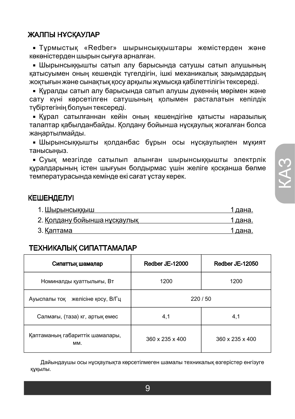 Redber JE-12050, JE-12000 User Manual [ru]