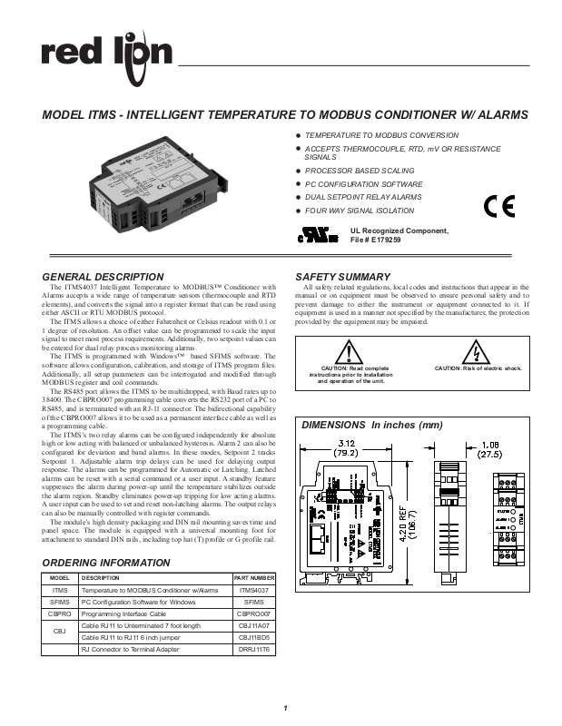 The remaining sections of this bulletin list ITMS Register Format information and MODBUS conformity.