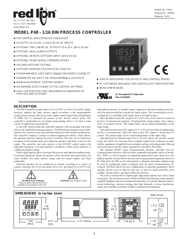 MODEL P48 - 1/16 DIN PROCESS CONTROLLER