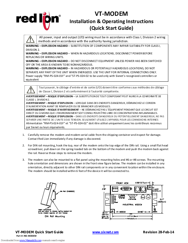 VT-MODEM Quick Start Guide www.sixnet.com Revision 28-Feb-14