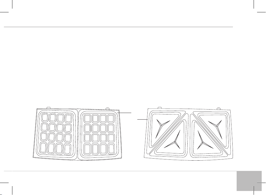 Бутербродница RSM-M1403 снабжена тремя комплектами сменных пластин для приготовления