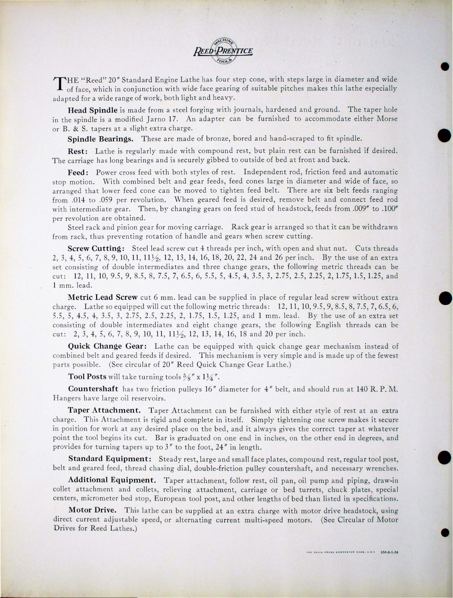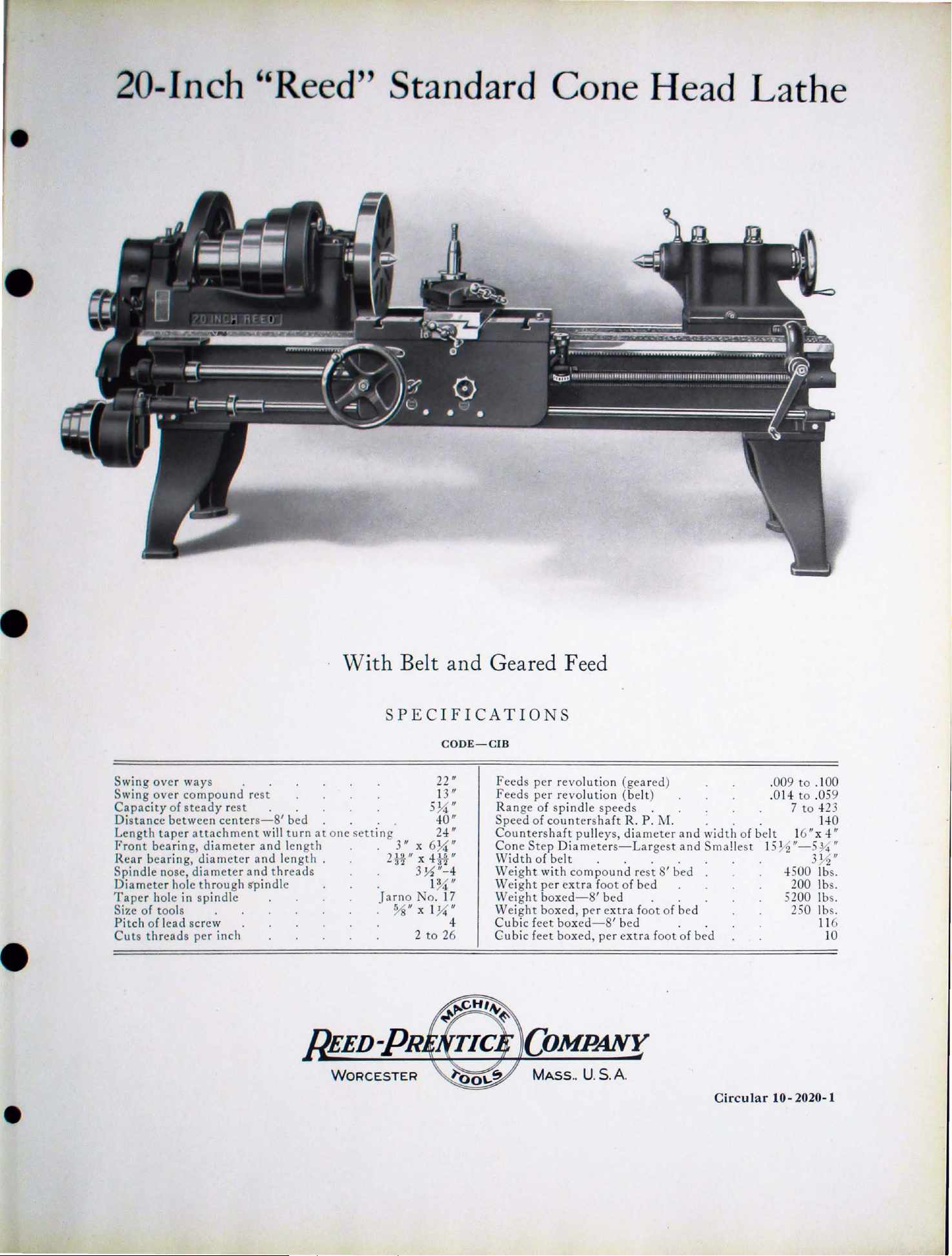 20-Inch ''Reed'' Standard Cone Head Lathe