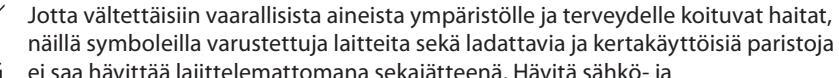 За да се избегнат екологични и здравни проблеми поради наличие на опасни субстанции, уредите, акумулаторните и неакумулаторните батерии, обозначени с един от тези символи, не трябва да се изхвърлят заедно с несортирани общински отпадъци. Винаги изхвърляйте електрически и електронни продукти и, където е приложимо, акумулаторни и неакумулаторни батерии, на подходящо официално място за рециклиране/ събиране.