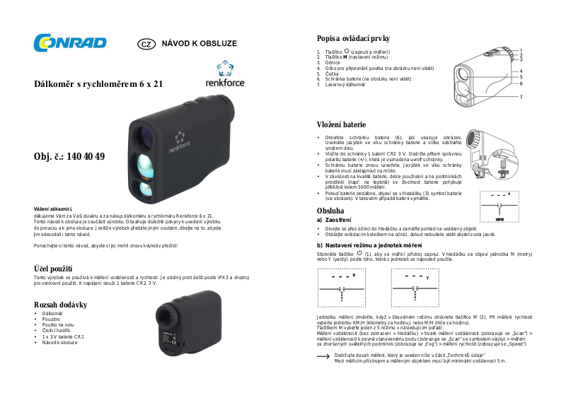 děkujeme Vám za Vaši důvěru a za nákup dálkoměru a rychloměru Renkforce 6 x 21.