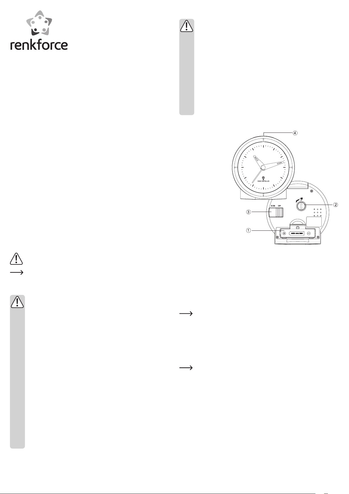 Direkt nach dem Einlegen der Batterie erfolgt der erste Empfangsversuch für das DCFSignal. Die Uhrzeiger laufen in die Empfangsposition und stellen sich nach erfolgreichem DCF-Empfang automatisch auf die aktuelle Uhrzeit.