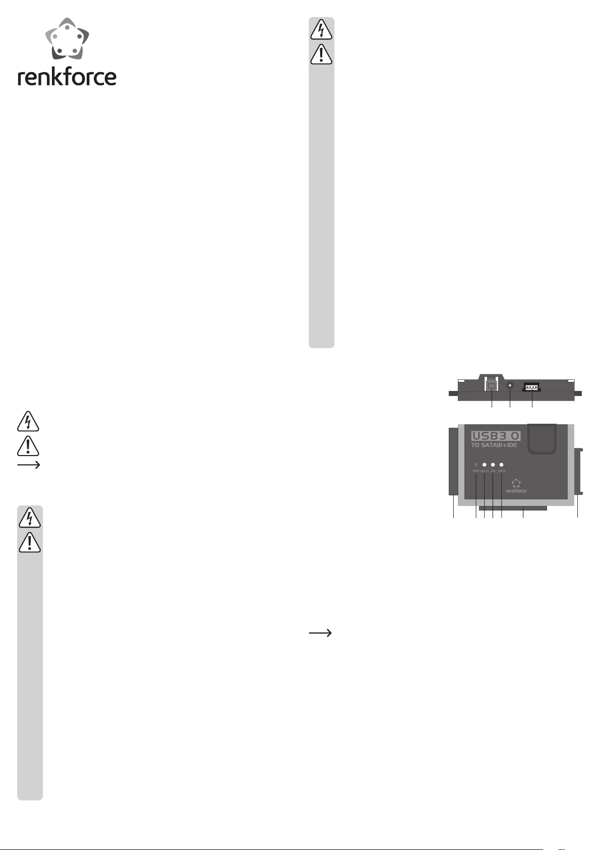 • De toegangs-LED’s „IDE“ (7) resp. „SATA“ (8) knipperen wanneer er handelingen worden uitgevoerd op het IDE- resp. SATA-station.