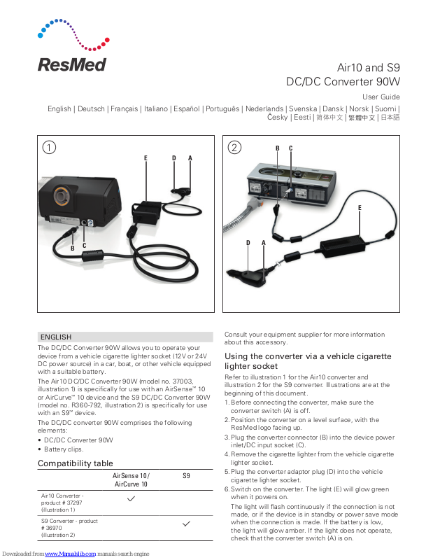 ResMed garanterer at ResMed DC/DC-omformeren