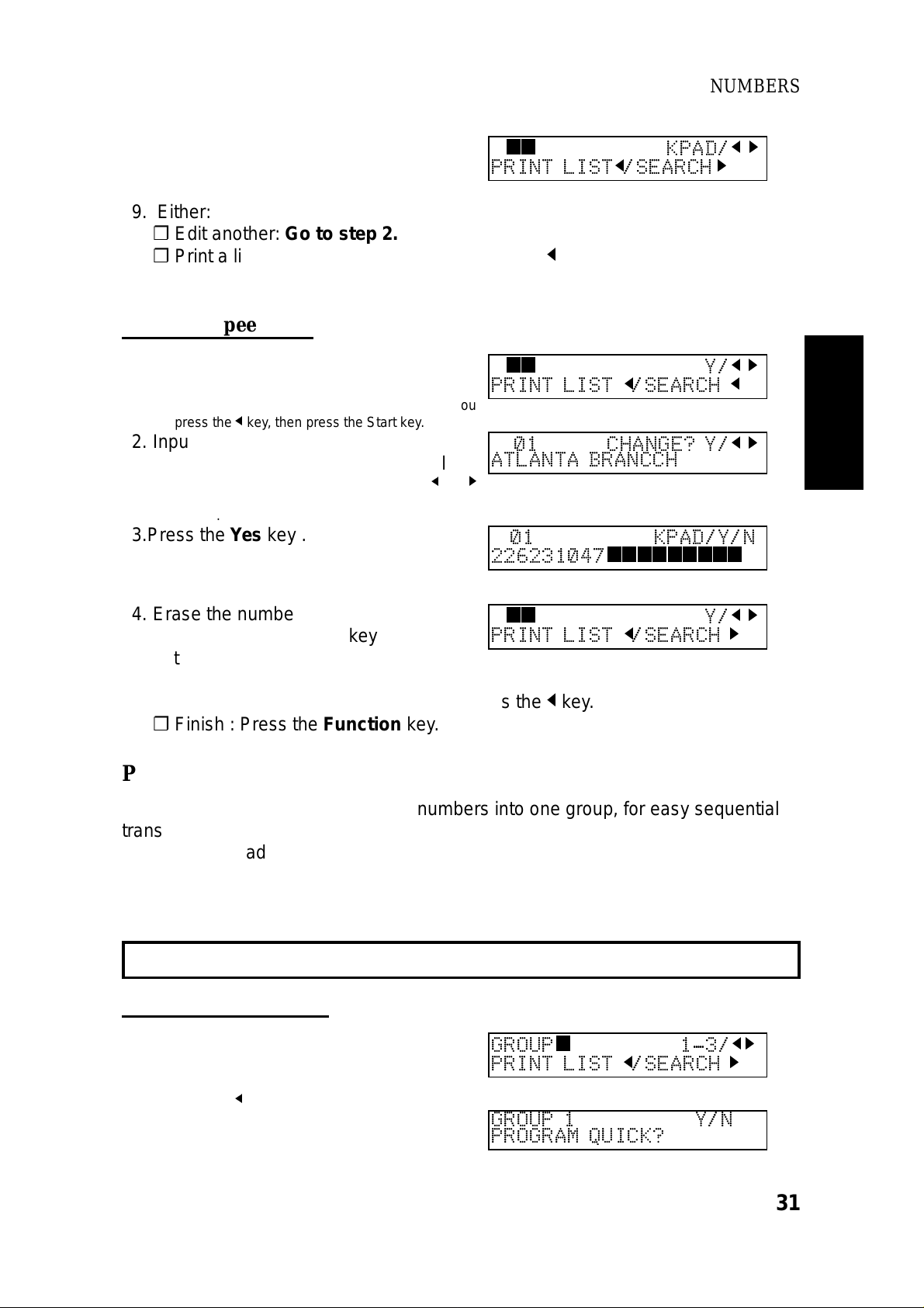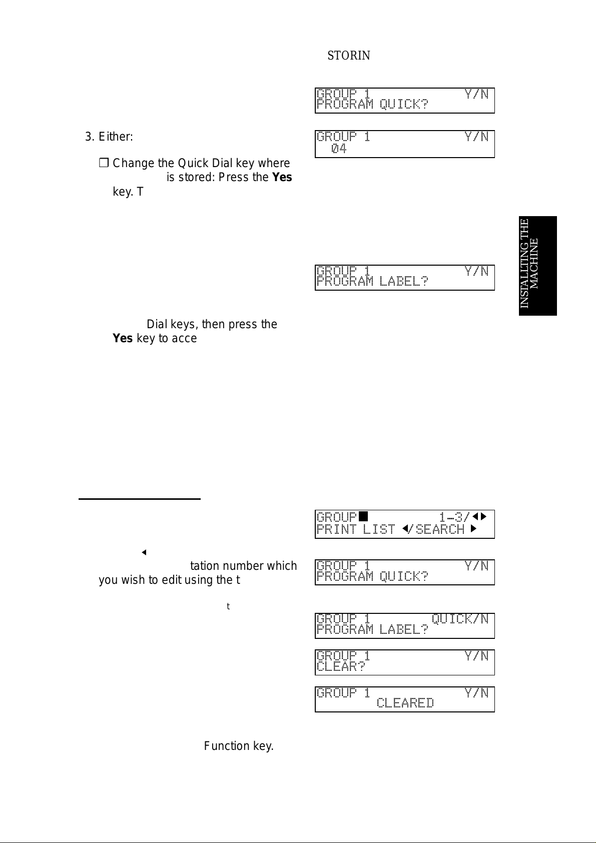 machine’s Quick Dial Keys, Speed Dial Codes and Groups. Type II is only