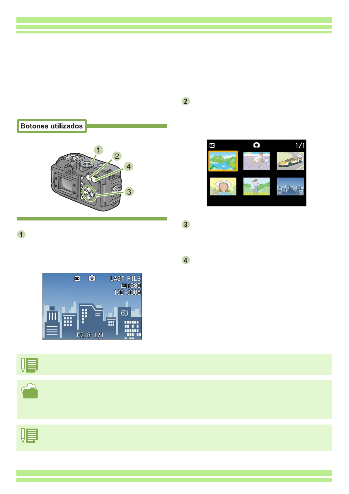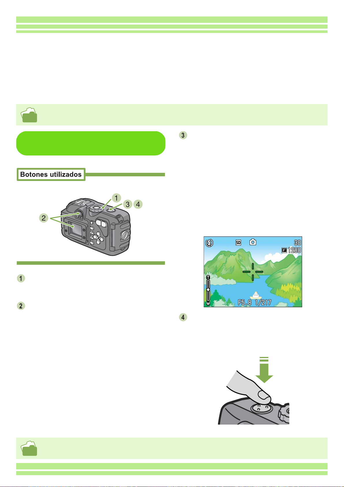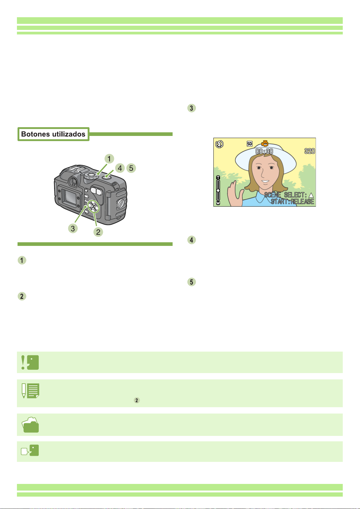 Este manual provee ejemplos de la visualización del monitor LCD de la Caplio G4 wide que tiene funciones de toma equivalentes a las funciones de esta cámara.
