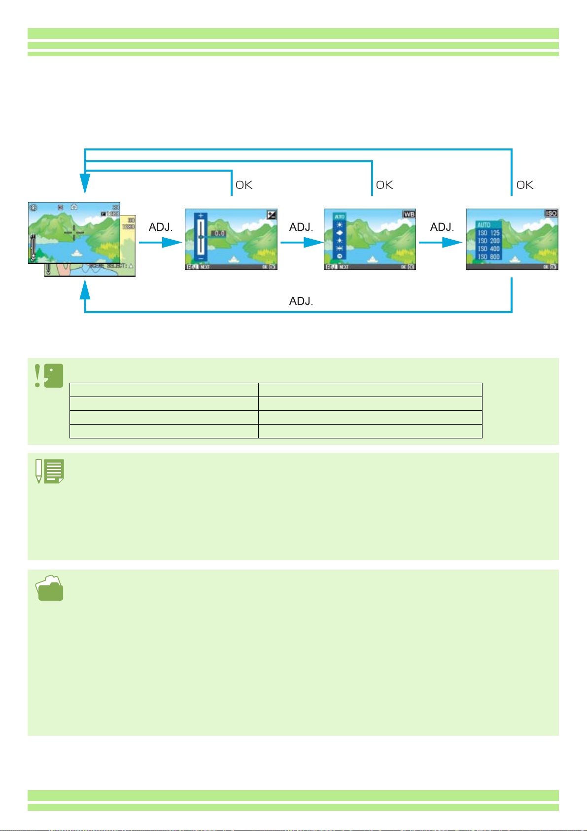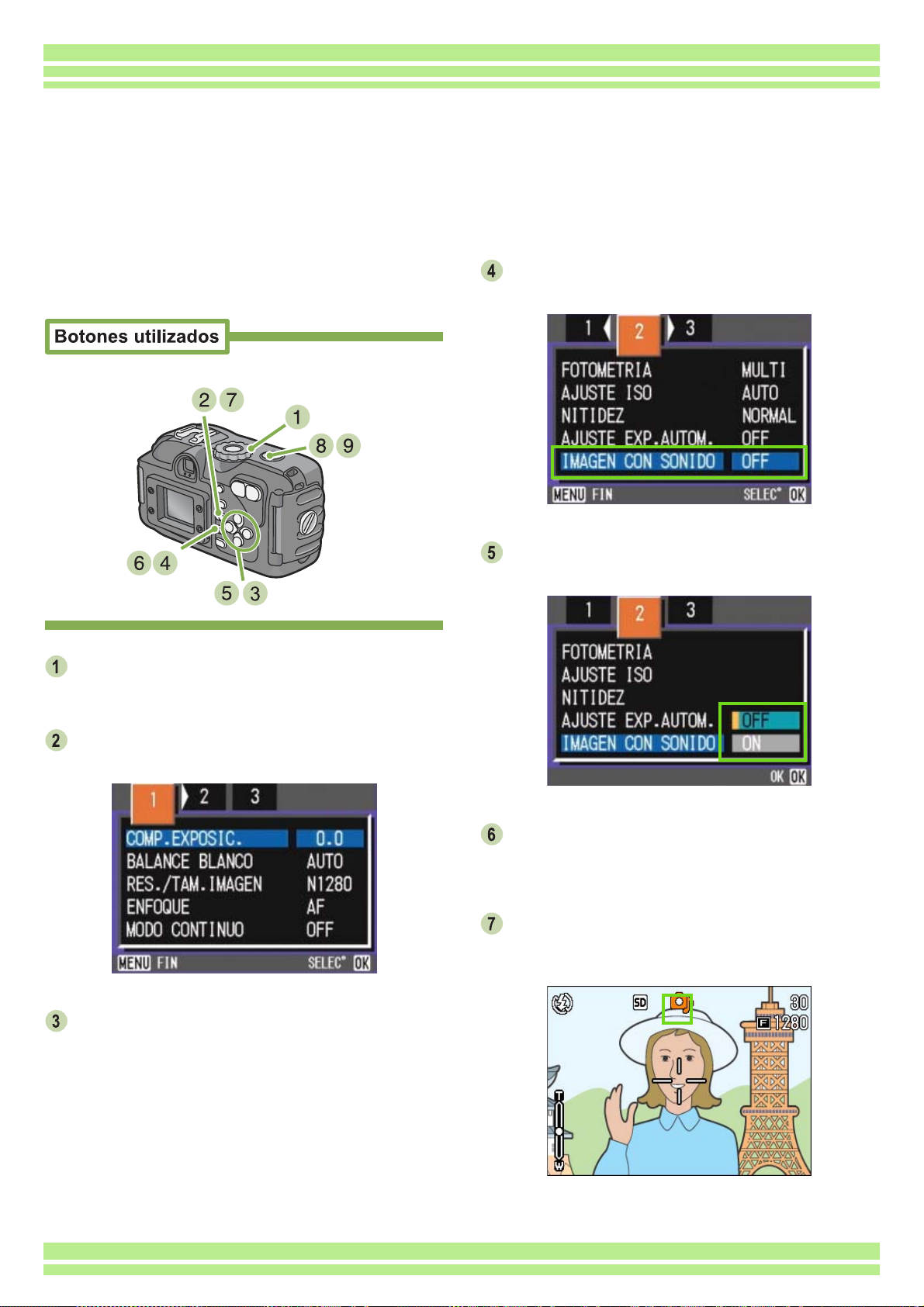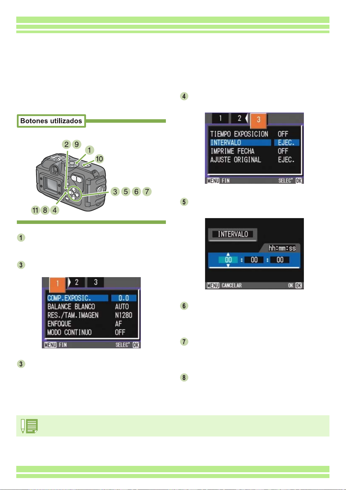 Este manual provee ejemplos de la visualización del monitor LCD de la Caplio G4 wide que tiene funciones de toma equivalentes a las funciones de esta cámara.