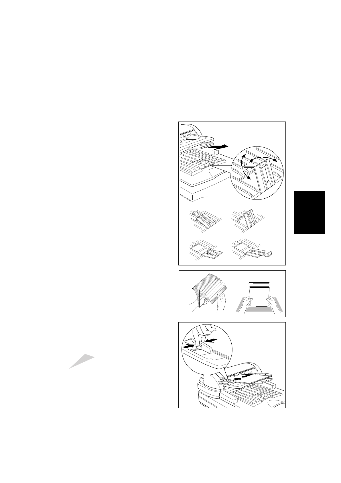 In this mode, orig inals which a re set on the fe eder one a t a time ar e auto matic ally f ed into the
