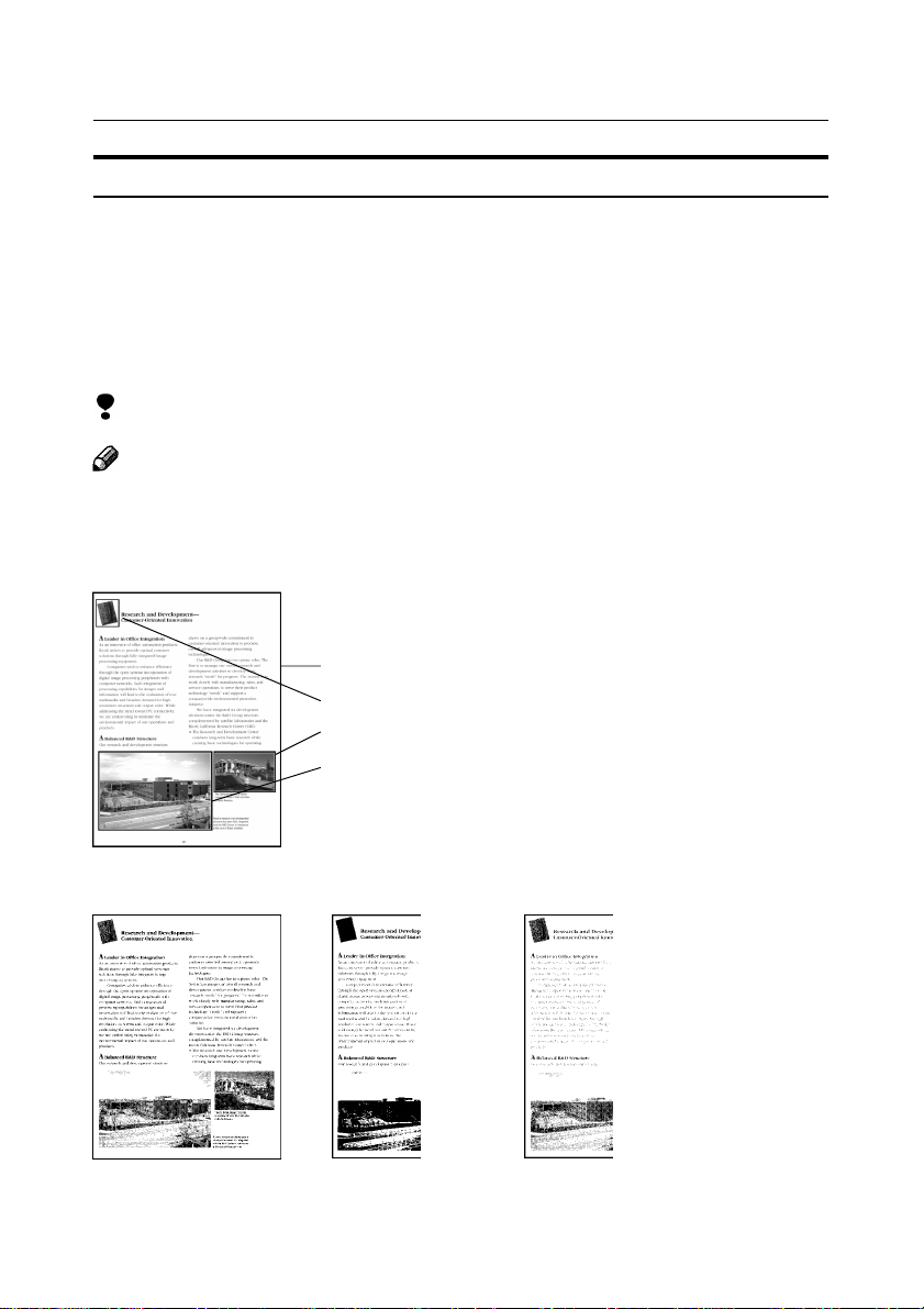 photo (intermediate tone image), and scans the text areas in binary scanning mode and the photos