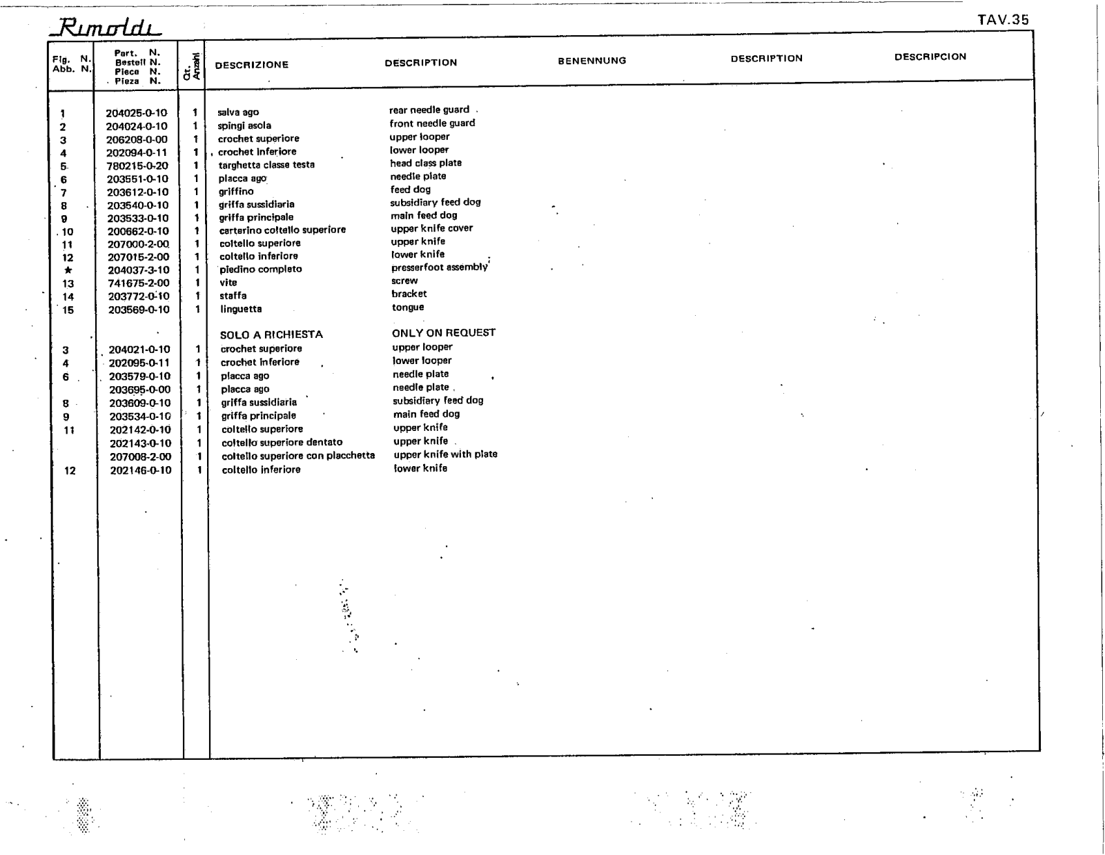 Rimoldi Parts List