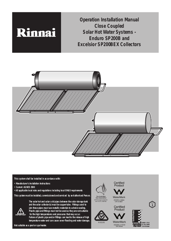 authority� Rinnai strongly recommends the use of an off-peak tariff to