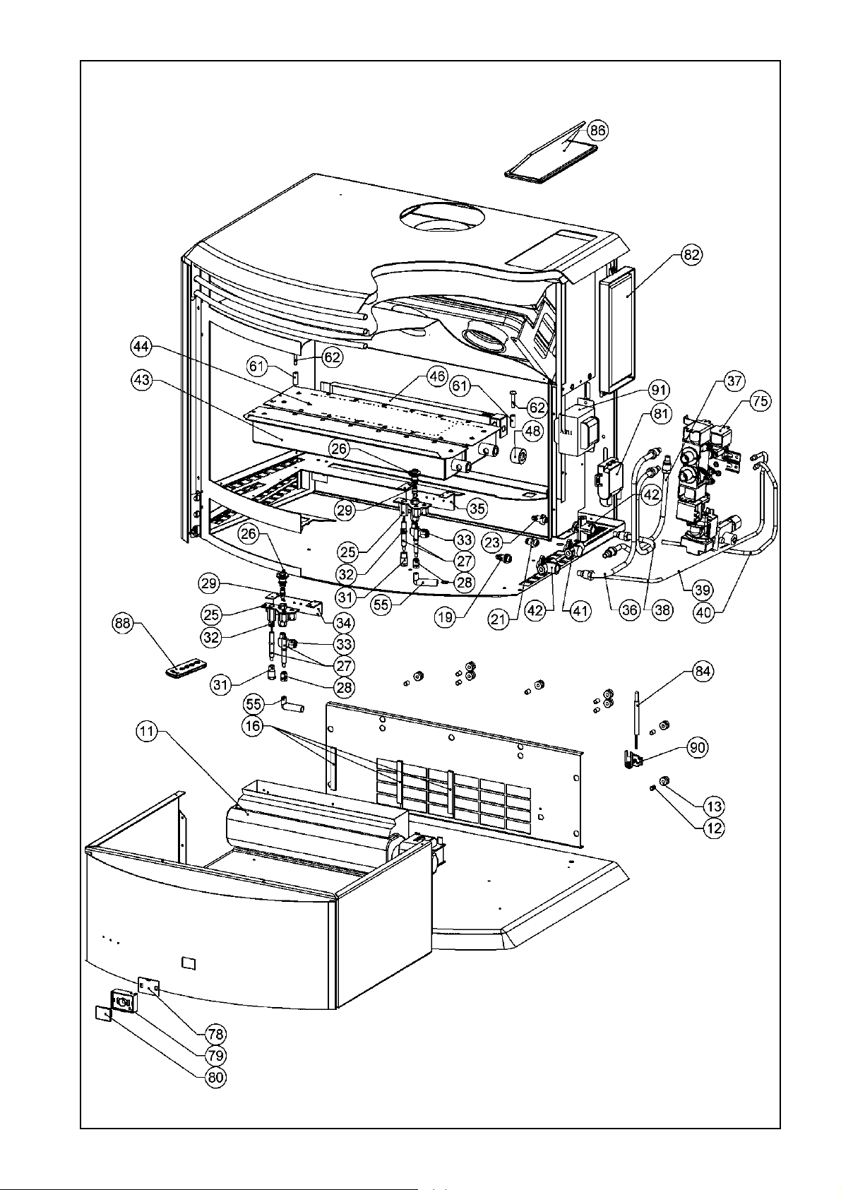 Description:Freestanding radiant/convector, glass-fronted, ceramic log space