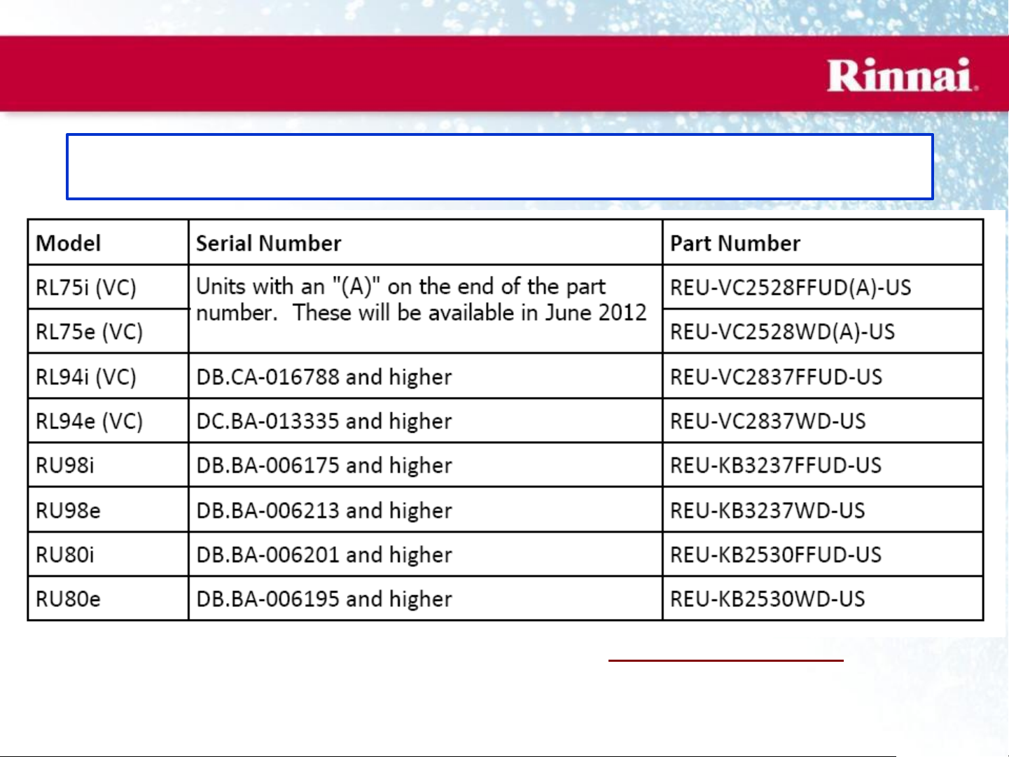 For specific information on warranty with circulation, visit http://www.rinnai.us/warranty