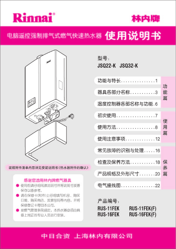 Rinnai JSQ22-K, JSQ32-K User Manual
