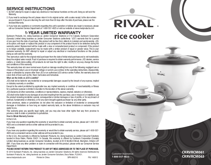 Rival CKRVRCM061, CKRVRCM063 User Manual