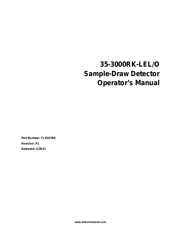 71-0223RKOperator’s Manual, 35-3000RK-LEL/O Sample-Draw Detector (this document)