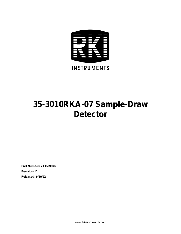This manual describes the 35-3010RKA-07 sample-draw detector. This manual also