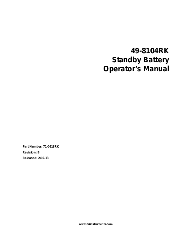 This manual describes the 49-8104RK standby battery. This manual also describes how to