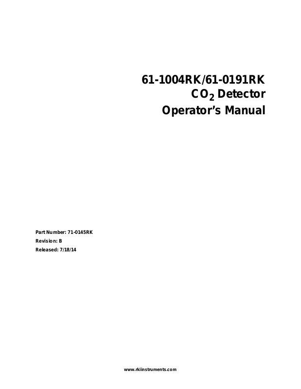 This manual describes the 61-1004RK CO2 (carbon dioxide) detector. This manual also