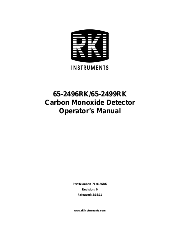 71-0156RK65-2496RK/65-2499RK CO Detector Operator’s Manual (this document)
