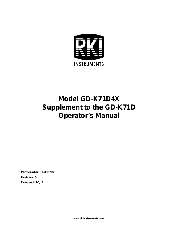 This supplement describes the differences and additional features of the Model GDK71D4X compared t o the GD- K71D. It also descri bes how to install , startup, ma intain , and