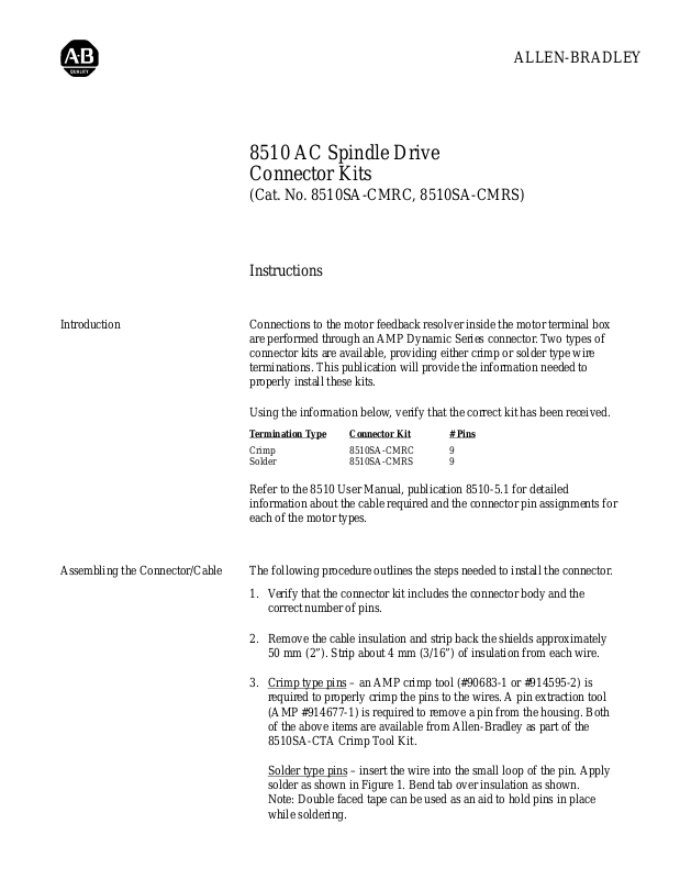 (Cat. No. 8510SA-CMRC, 8510SA-CMRS)