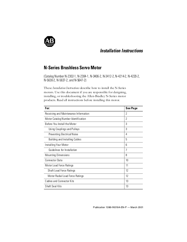 installing, or troubleshooting the Allen-Bradley N-Series motor