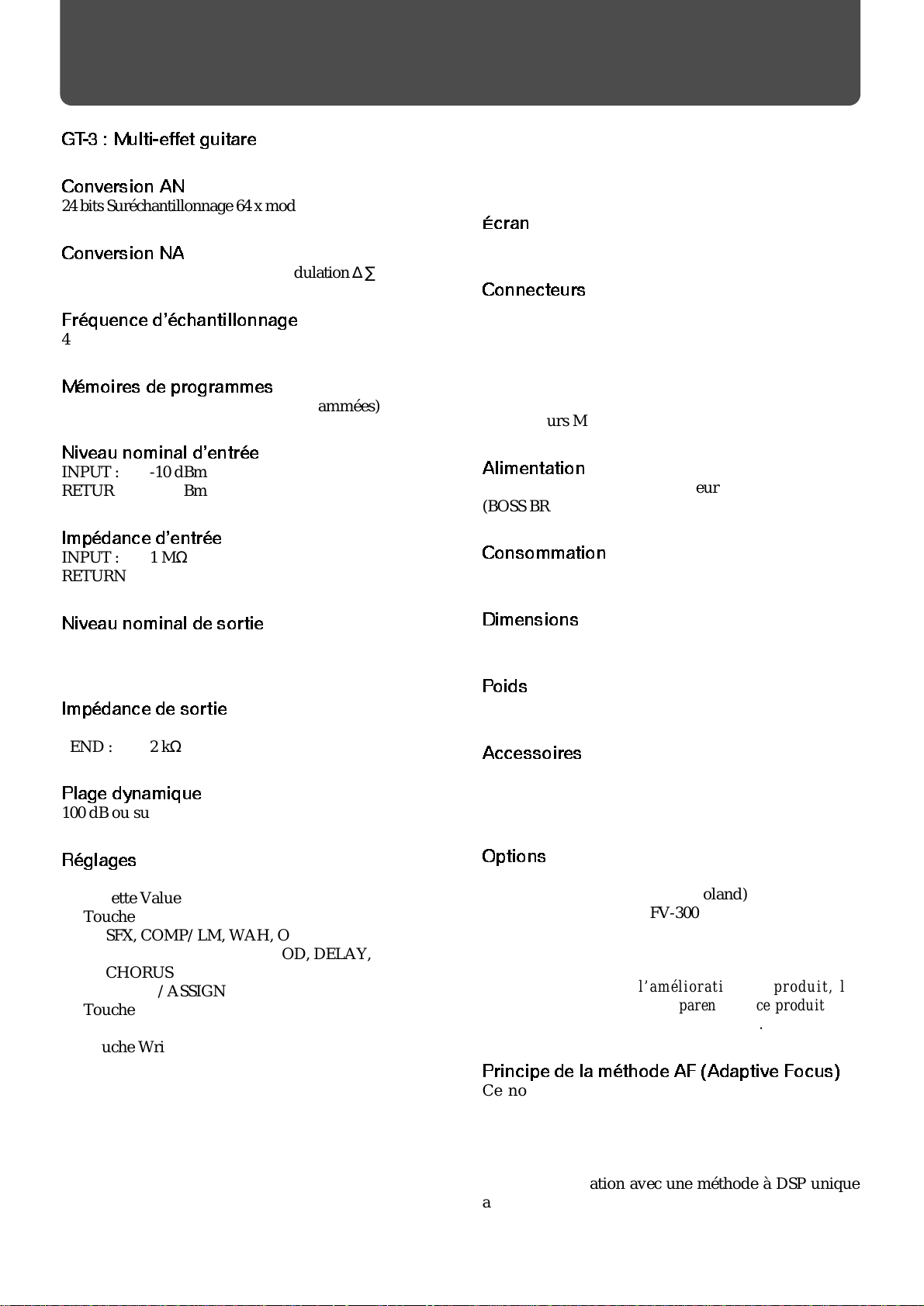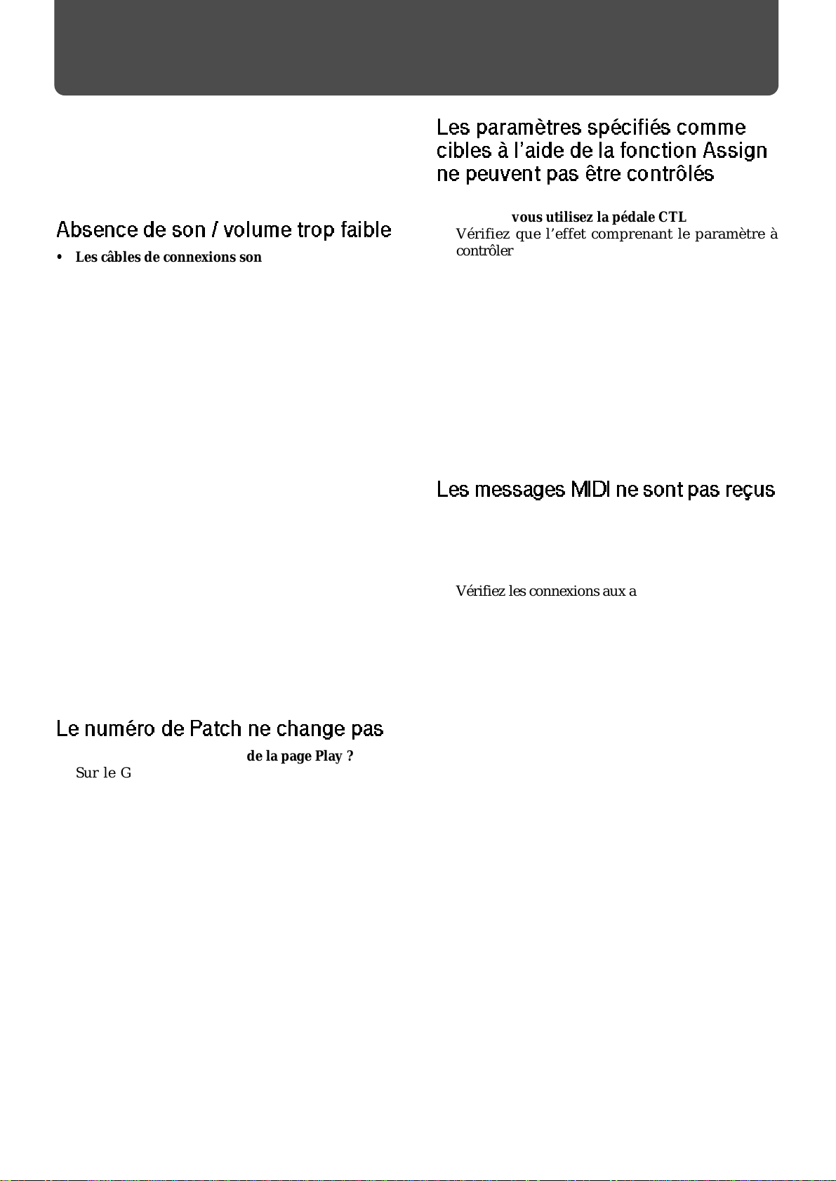 Lorsqu’un Patch est sélectionné sur le GT-3, les