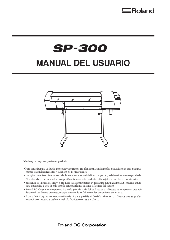 • Roland DG Corp. no se responsabiliza de ninguna pérdida ni de daños directos o indirectos que se puedan