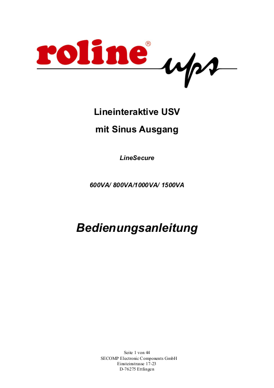 - Diese Anleitung enthält wichtige Sicherheitshinweise die während der Installation und Wartung der USV