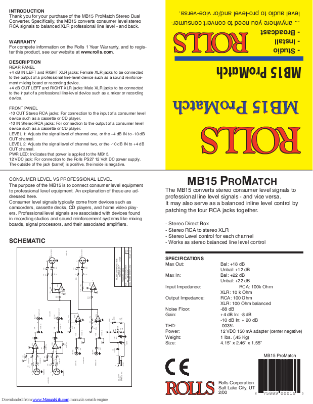 Thank you for your purchase of the MB15 ProMatch Stereo Dual