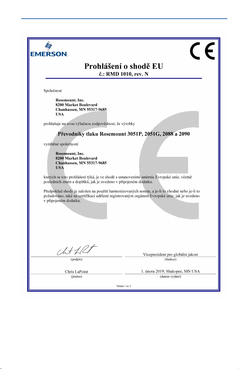 Obrázek 12. Prohlášení o shodě pro převodník Rosemount 2051G