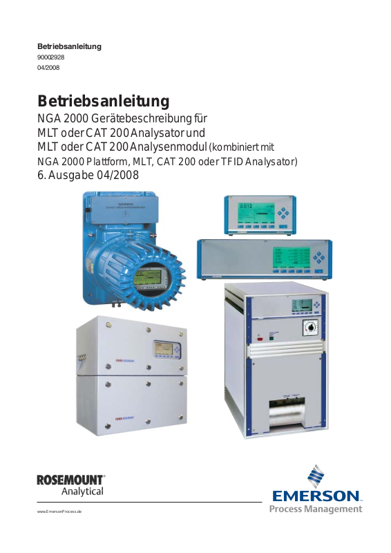 Rosemount Betriebsanleitung: NGA 2000 Gerätebeschreibung für MLT oder CAT 200 Analysator und MLT oder CAT 200 Analysenmodul (kombiniert mit NGA 2000 Plattform, MLT, CAT 200 oder TFID Analysator) 6. Ausgabe (dt.) Manuals & Guides [de]