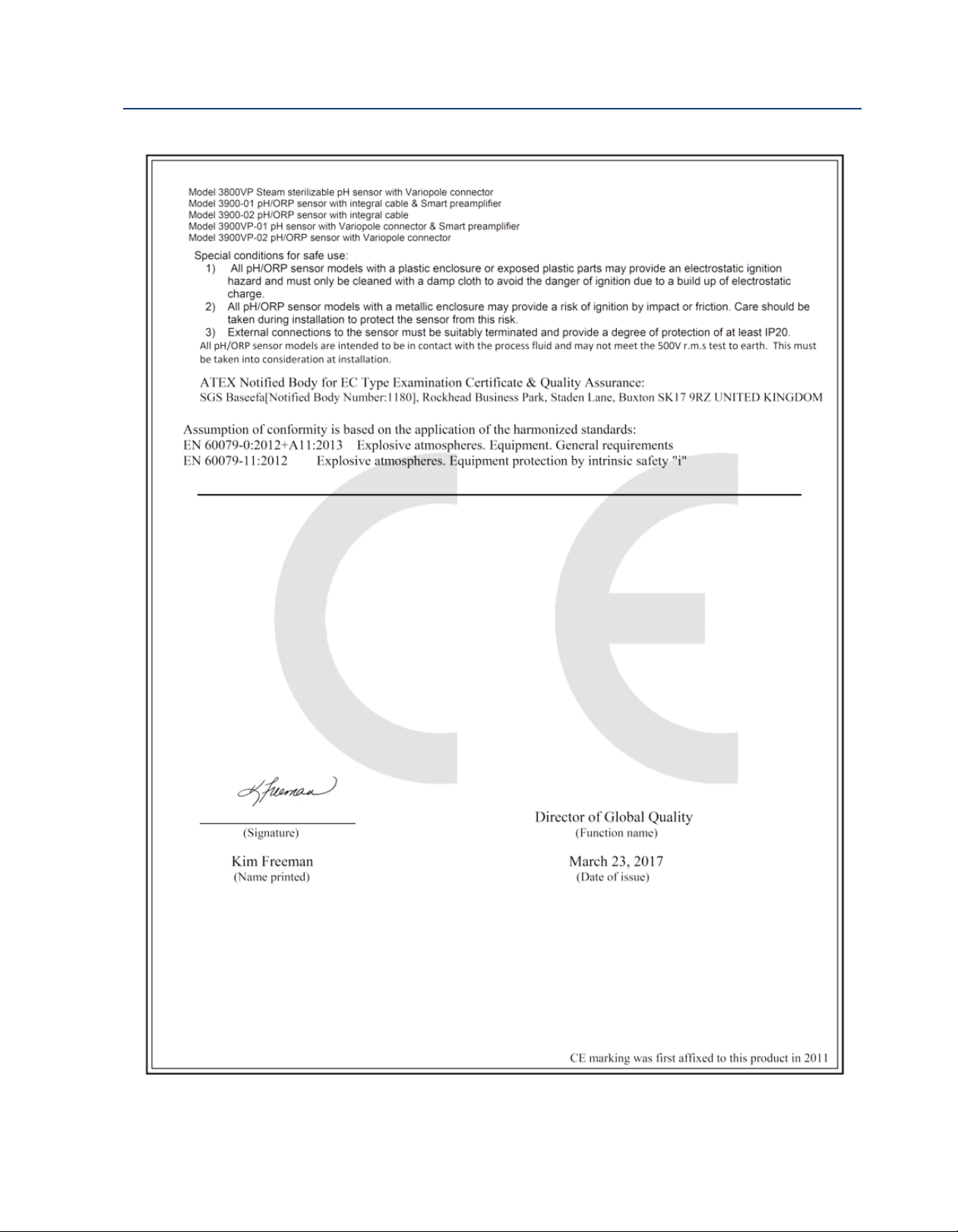 2. All pH/ORP sensor models are intended to be in contact with the process fluid and may not meet the