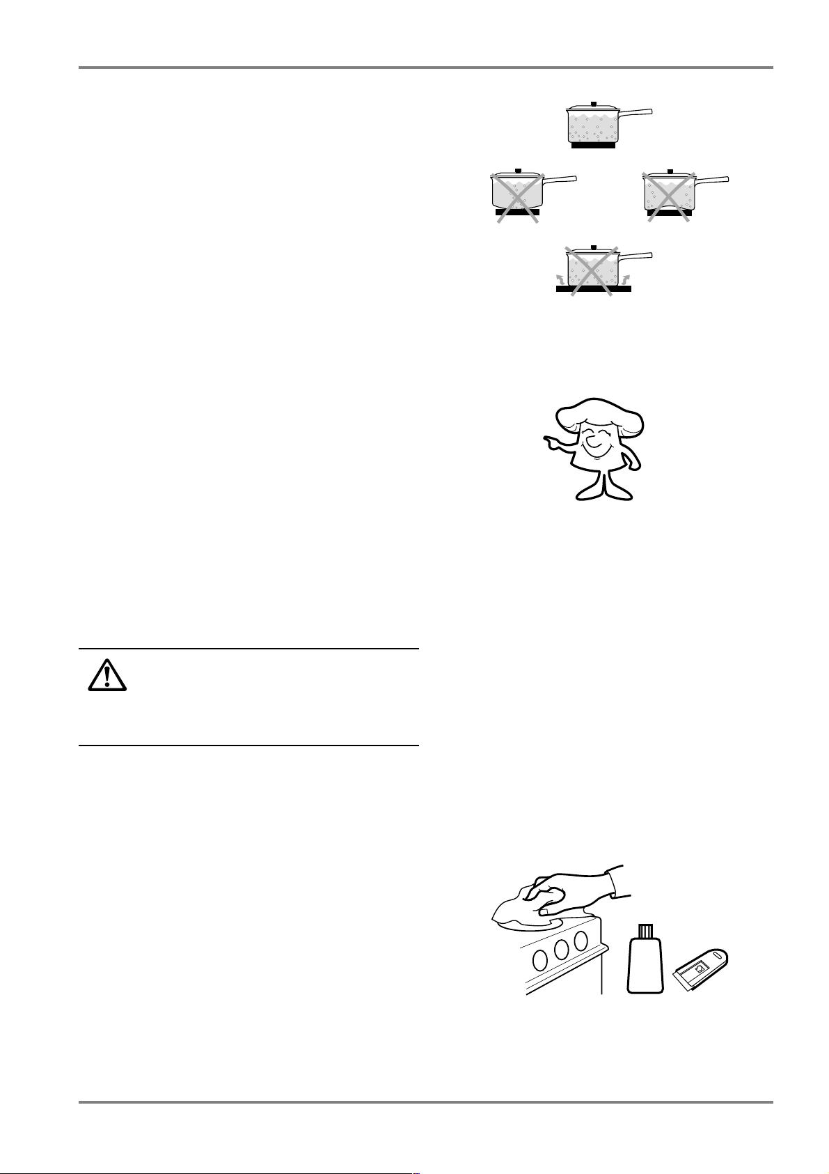 mutta kerro heille, että kattilat, taso ja uuni kuumenevat ja pysyvät kuumana vielä jonkun aikaa käytön jälkeenkin.