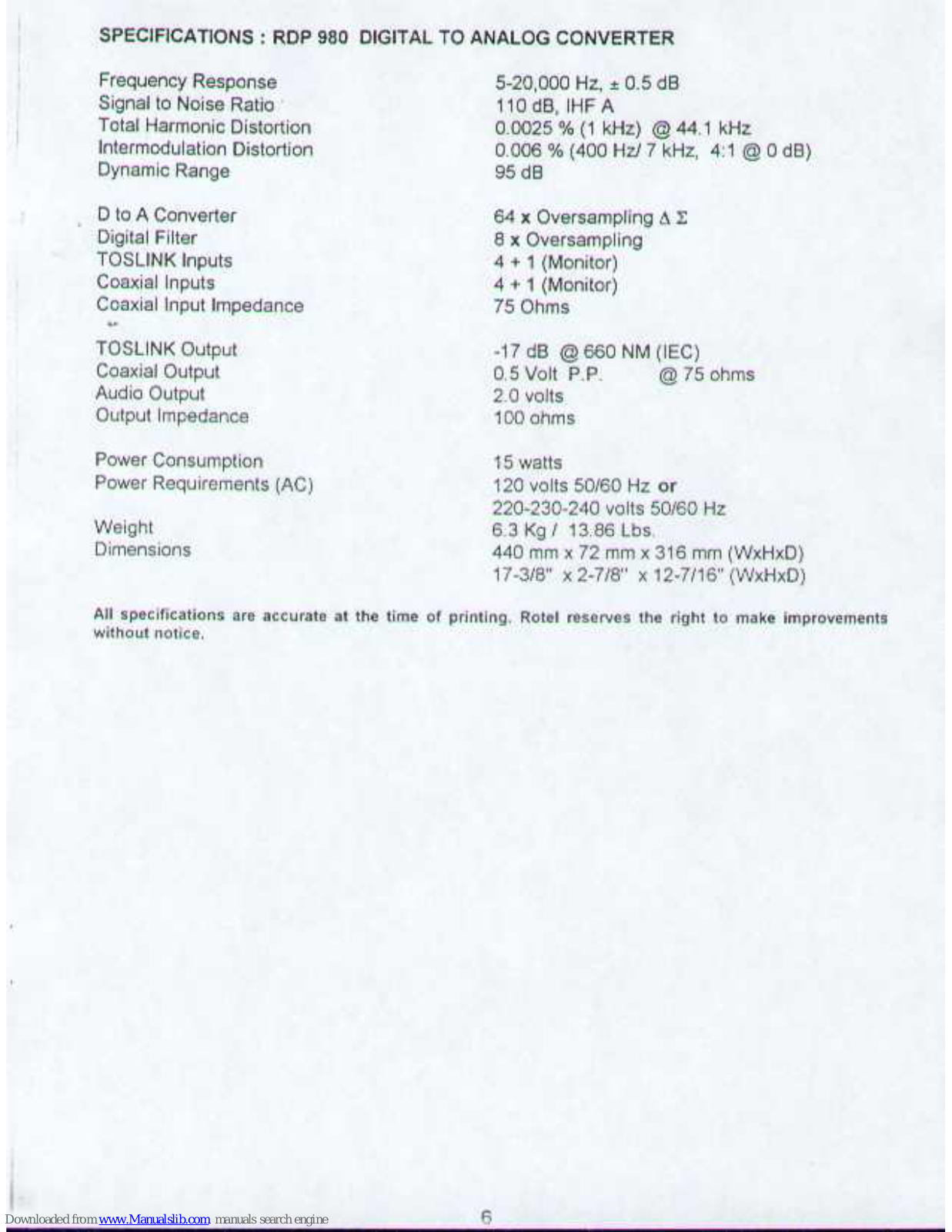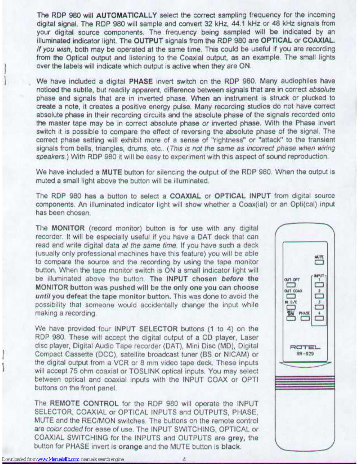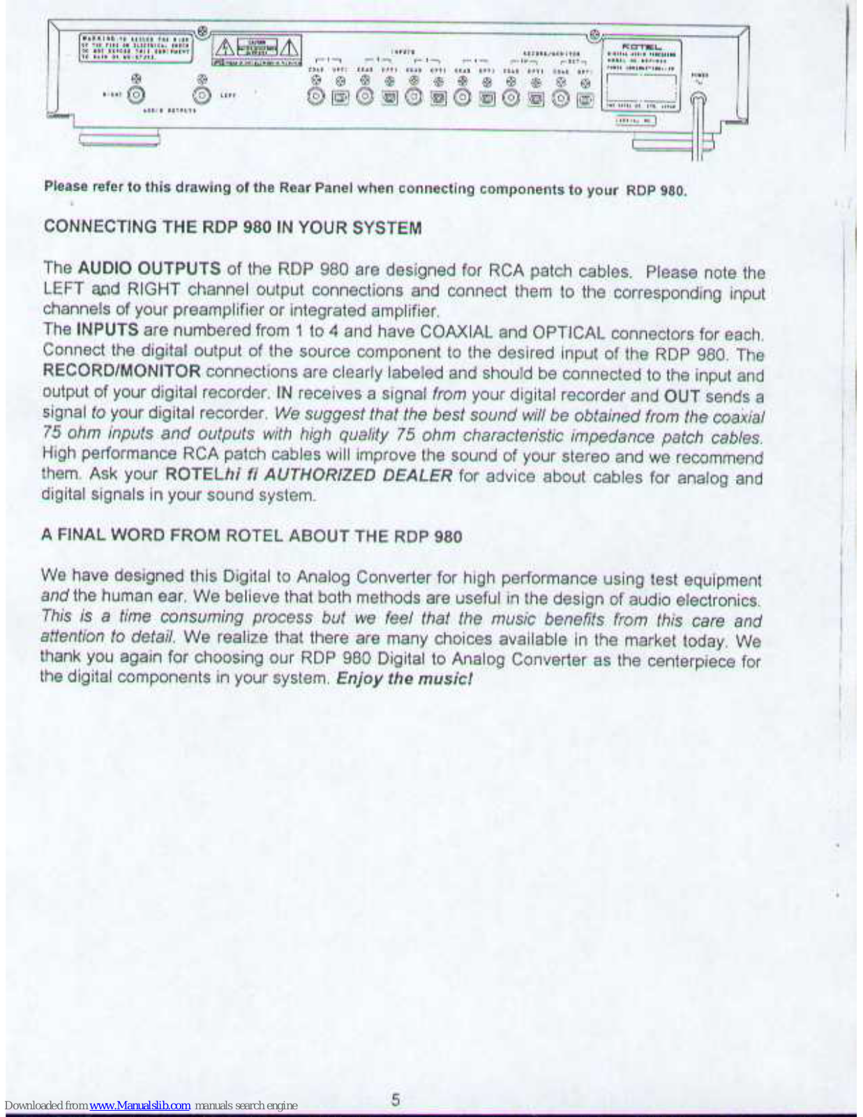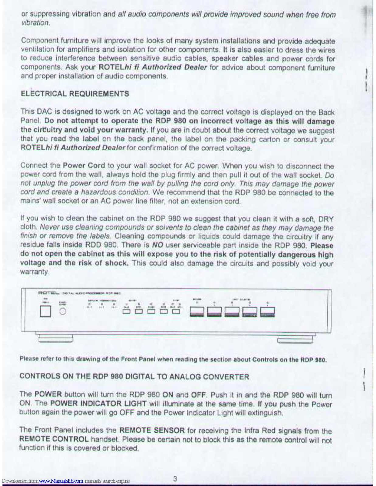 Rotel Digital Audio Processor RDP 980 Owner's Manual