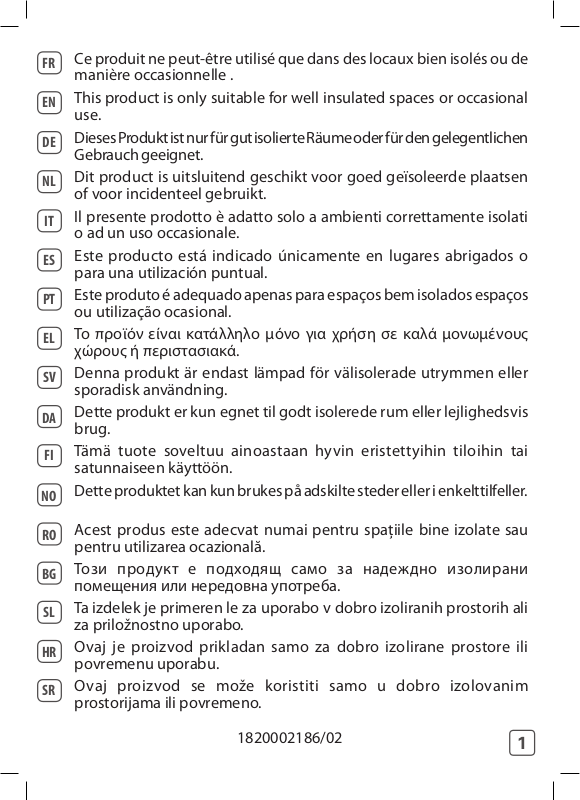 Dette produkt er kun egnet til godt isolerede rum eller lejlighedsvis